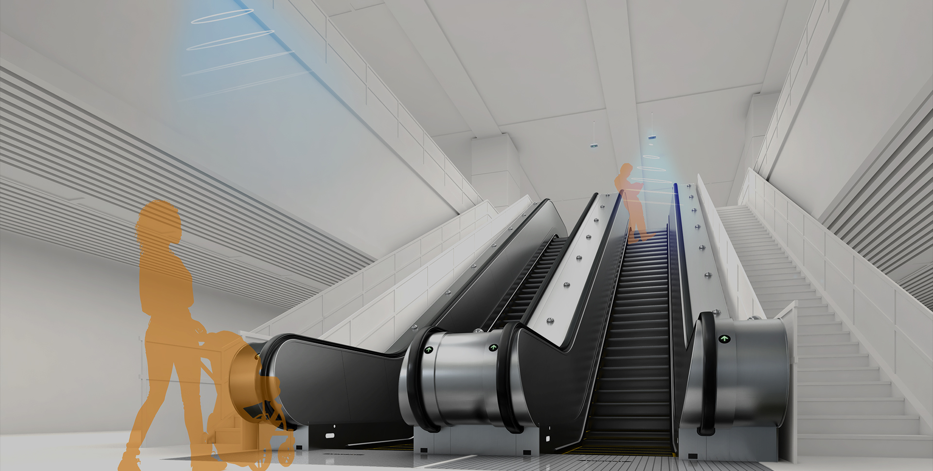 全變頻驅(qū)動(dòng)方式,配置的變頻器較馬達(dá)功率高一級。在監(jiān)測到扶梯上無乘客后,能自動(dòng)轉(zhuǎn)入節(jié)能低速運(yùn)行或休眠狀態(tài)。